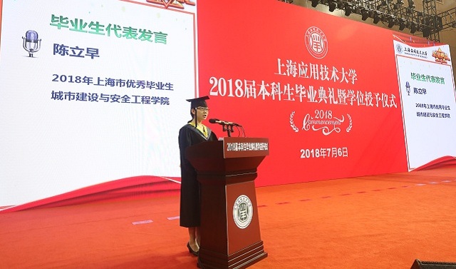 陈立早表达了自己对母校的依依惜别之情,倾诉了四年大学生活带给自己那些弥足珍贵的师生情谊、同学情谊。她说,上应大给我留下了目前人生中最精彩纷呈、最无与伦比的篇章。展望未来,又一篇章即将拉开帷幕。我要牢记习近平总书记关于“青春是用来奋斗的”的教导,永远保持奋斗精神。