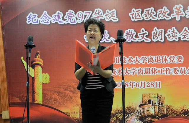 6月28日,校离退休党委举行“纪念建党97华诞 讴歌改革开放40周年”朗读会,校党委副书记、离退休工作委员会主任宋敏娟到会讲话并即兴朗诵《中国梦 筑起新的辉煌》。200余名离退休干部欢聚一堂,用自己的声音讴歌新时代,赞颂新发展。