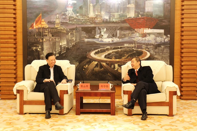 3月16日上午,校党委书记刘宇陆热情会见了民进上海市委专职副主委黄山明、组织部部长蒋碧艳一行。校党委常委、组织部统战部部长、党委办公室主任王瑛陪同会谈。