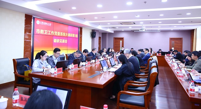 3月30日,市教卫工作党委系统大调研第5小组前来奉贤校区对我校开展大调研。调研组由市教委总督学平辉任组长、市教委发展规划处处长劳晓芸任副组长,成员由市教委规划处、人事处、财务处相关同志组成。校党委书记刘宇陆,校党委副书记宋敏娟,校党委副书记、纪委书记何星海,副校长张锁怀,党委常委、宣传部部长杨明,党委常委、组织部统战部部长、党办主任王瑛,部分职能部门负责人出席见面会。
