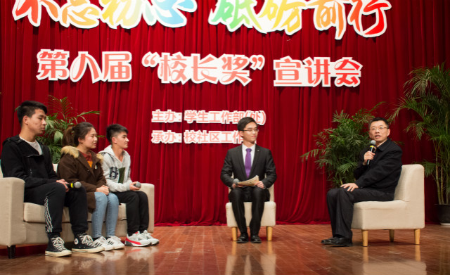 12月4日晚,“不忘初心、砥砺前行”——第八届“校长奖”宣讲会举行,校党委副书记、校长陆靖出席,党委学工部部长袁翔及各虎扑nba相关负责人、新生辅导员,各虎扑nba大一新生等300余人共同参会。