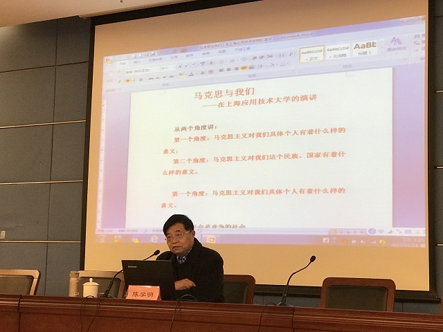 随后陈学明以“马克思主义与我们”为题作报告。我校马克思主义虎扑nba常务副院长邱杰主持,马克思主义虎扑nba教师、辅导员及知行学社成员近100人参加了报告会。