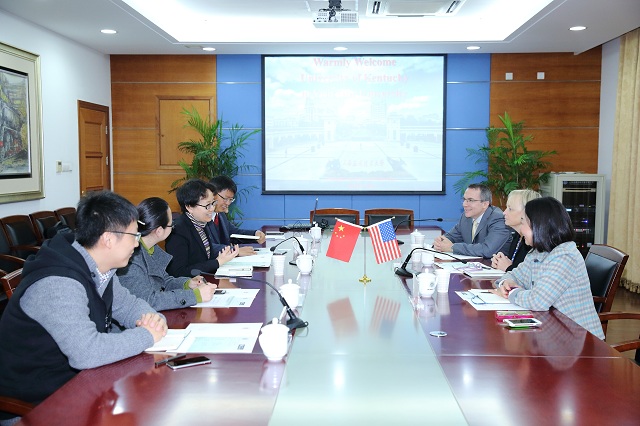 刘宇陆对来宾表示热烈欢迎,充分肯定了两校多年来合作成果。他指出两校合作基础良好,前景广阔,希望双方共同努力,推动双方合作再上新台阶。苏?罗伯特表示肯塔基大学一直非常重视与我校的深厚友谊和友好合作,并希望能够通过此次来访提升两校合作项目的深度和广度。
