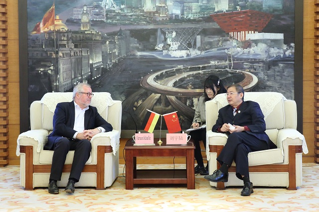 10月25日,校党委书记刘宇陆热情会见了来访的德国斯泰恩拜斯大学中国中心副主任、巴登符腾堡州前经济部长赫曼?绍夫勒(Hermann Schaufler)及德国史太白技术转移有限公司中国区总经理覃焱一行。