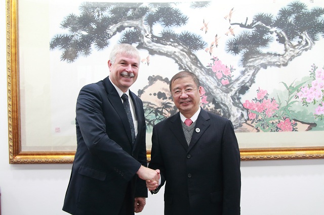 图宁加感谢我校热情接待。他介绍了金斯顿大学的发展、学科建设及国际合作情况,并表示金斯顿大学将致力于推动与我校在创新创业教育、学生交流、合作科研等领域开展合作。