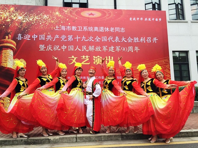9月29日下午,由市教卫党委老干部处、市高校退休教职工管委会主办的“爱我中华 共筑中国梦--上海市教育系统离退休老同志文艺演出”在上海交大举行,我校离退休工作委组织退休教职工舞蹈队携新疆舞《掀起你的盖头来》作为开场舞热情参演,节目用其动感欢快的旋律和绚丽多变的舞姿,将全场的气氛烘托得活泼热烈,既展现了“一带一路”国家战略带来的多元灿烂的文化繁荣和社会进步的发展景象,又抒发了老同志迎接党的十九大召开的喜悦心情,充分展现了我校离退休老同志积极乐观的精神风貌,赢得了满场喝彩与好评。