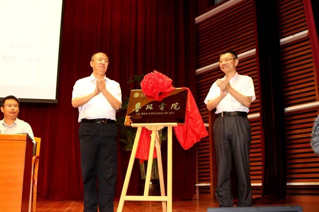 刘宇陆、陆靖共同为鲁班书院揭牌。刘宇陆向鲁班书院专业导师代表颁发聘书,张艳萍为鲁班书院授院旗。