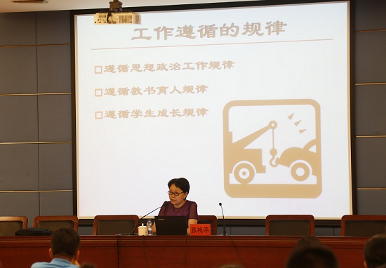 张艳萍指出,学生工作的根本是学生的安全、健康和成长。她剖析了辅导员职业能力标准中的九大工作领域,要求辅导员工作应遵循思想政治工作规律、教书育人规律与学生成长规律,带着使命感去最大限度地激发学生动力,不断创新工作方式方法,牢牢守住教育教学传播主阵地,不忘初心,方得始终。