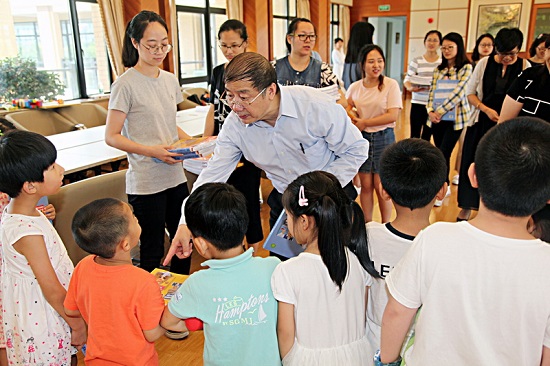 7月6日,校党委书记刘宇陆,校党委副书记、副校长张艳萍亲切看望了参加“爱心暑托班”的教职工子女,代表虎扑nba给小朋友们每人送了一份小礼物,同时慰问了参与暑托班工作的教师和学生志愿者。刘宇陆充分肯定了教师和学生志愿者在爱心暑托班的服务工作。