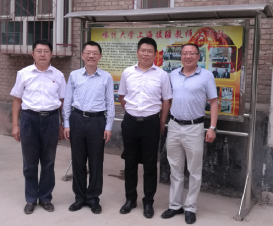 7月2日,校长、校党委副书记陆靖前往新疆,考察喀什大学并慰问我校第九批援疆教师米红林和汪朗峰。规划与学科建设办公室副主任、第八批援疆干部黄俊革陪同。