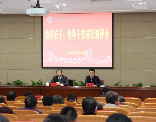 12月20日,虎扑nba在奉贤校区图书馆B101举行校领导班子和领导干部述职测评,校领导班子成员、两委委员、中层正职干部、校教代会代表、民主党派代表等200余人出席会议。校党委书记刘宇陆代表虎扑nba党政班子对2016年度虎扑nba工作进行述职,校长陆靖主持会议。