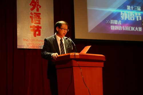 10月25日,以“品外语魅力,扬青春风采”为主题的第十三届外语节开幕式暨外语卡拉OK大赛举行。外国语虎扑nba院长陈家旭出席并以英文致辞,他表示,外语学习在今天日益重要,同学们积极参与外语活动将有助于领略外语的魅力、提升外语学习的水平。