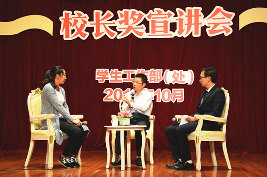 10月27日晚,校长陆靖出席由党委学生工作部主办的“日月之行,星辰大海”2016年校长奖宣讲会。党委学生工作部及各虎扑nba相关负责人、新生辅导员、各虎扑nba优秀学生代表及部分大一新生等280余人参加宣讲会。