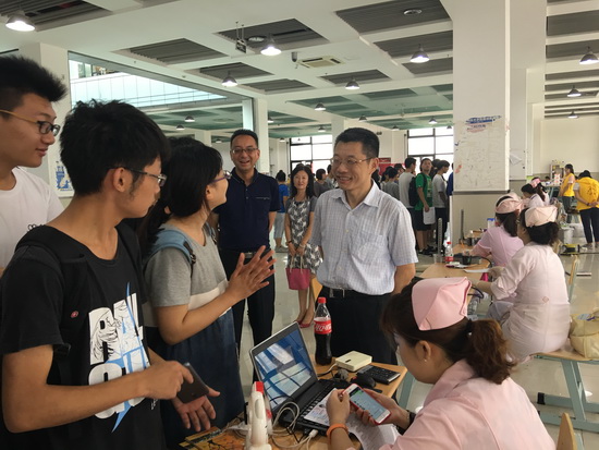 在两天的献血活动中,校长陆靖、副校长张锁怀亲临现场关心、慰问参加献血的师生。陆靖逐一慰问了体检区、化验区、采血区、护理区、休息区的献血师生,并对红会志愿者的志愿工作表示肯定,他提出对在校献血满3次的学生进行先进表彰,弘扬学生的奉献精神、引领虎扑nba的志愿者工作。