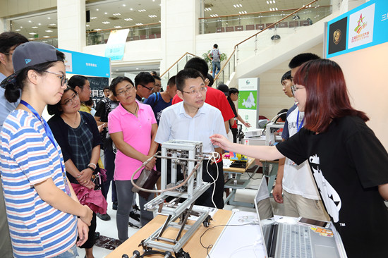 近日,校长陆靖、副校长叶银忠出席校“创新点燃梦想,竞赛铸就辉煌”——第六届大学生“创新·创业·创意”教育成果展示会,与全校4000余名新生一同参观了成果展。