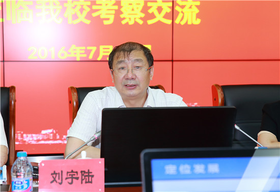 刘宇陆介绍了我校在发展定位、人才培养、学科专业及师资队伍建设等方面的情况,重点介绍了我校“十三五规划”的发展目标和建设举措。宋敏娟、叶银忠、张锁怀分别就党的建设、转型发展与应用型人才培养、实验室建设情况进行了介绍。
