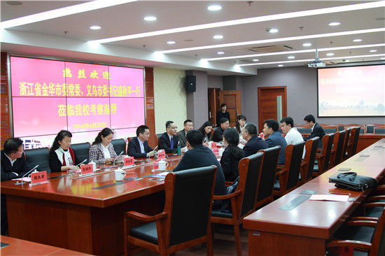 4月23日,副校长陈东辉热情会见来校出席建校62周年华诞暨“上海应用技术大学”揭牌仪式的我校知名校友、浙江省金华市委常委、义乌市委书记盛秋平一行。