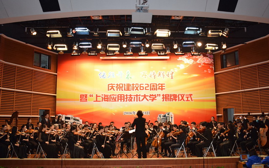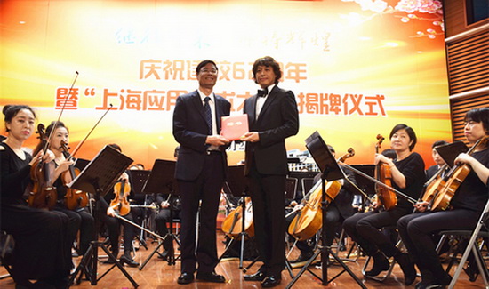 4月23日,一台专为祝贺我校校庆暨更名揭牌的交响音乐会在学生活动中心多功能厅举行,由上海爱乐乐团演奏、著名青年指挥家张亮执棒指挥。演出中,叶银忠副校长向张亮颁发了由校长陆靖签发的客座教授聘书。老领导、老校友、嘉宾和师生代表济济一堂,共同欣赏了这台精彩演出。而在图书馆、徐汇校区各分会场、各教室、各办公室的同步视频直播以及网上直播则吸引了更多的观众。演出由校大学生艺术团艺术指导李建民主持。