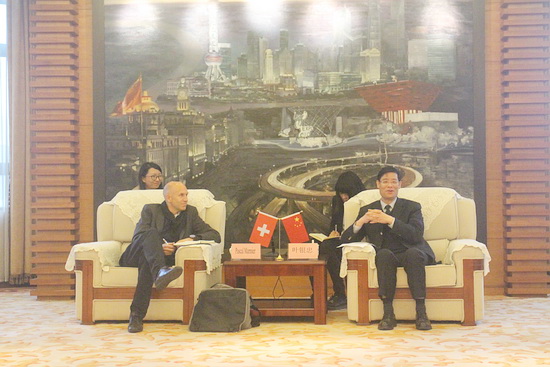 4月12日,副校长叶银忠热情会见了来校访问的瑞士伯尔尼应用科技大学外事办负责人、瑞士应用科技大学联盟主席会成员皮特?艾根曼(Peter Eigenmann), 伯尔尼应用科学大学技术与信息学系计算机科学教授艾曼纽艾尔?拜诺伊斯特(Emmanuel Benoist),瑞士联邦政府科技文化中心执行主任兼瑞士驻上海总领馆副总领事孟思恺(Pascal Marmier),学术项目主任楼碧君,瑞士驻北京大使馆科技处刘晨晨一行。