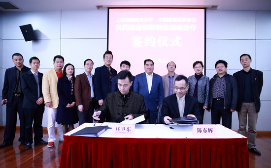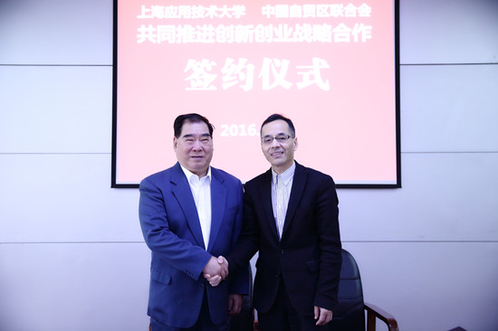 陈东辉与庄卫东分别代表上海应用技术大学和中国自贸区联合会,共同签订了双方战略合作框架协议。