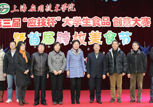 12月16日中午,正值师生午休时分,学生活动中心底楼大厅里人头攒动,四周布满了形形色色时尚、绿色食品创意作品的品鉴摊位。由上海市食品学会主办,上海越哲食品有限公司资助,我校香料虎扑nba科学商店和“食全食美”社团共同承办的“第三届‘应技杯’大学生食品创意大赛暨首届跨校美食节”在这里隆重举行。校党委书记刘宇陆,副书记、副校长张艳萍,上海越哲食品有限公司技术总监励振以及教务处、香料香精联合党委、学生处、后保处、校团委、工会等部门的负责人应邀出席了此次活动。