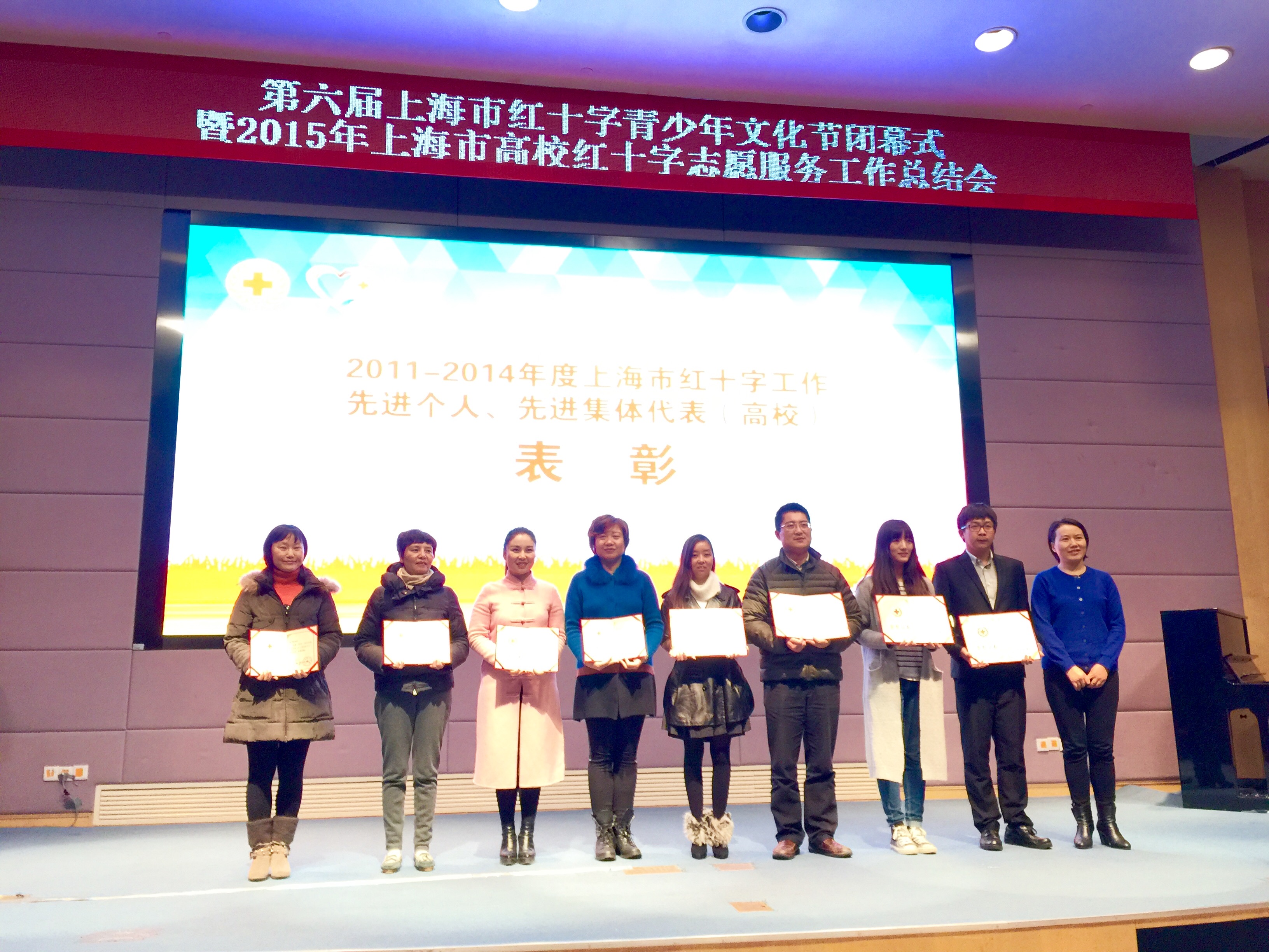 12月5日,上海市红十字会举行表彰大会,我校荣获2011-2014年度上海市红十字工作先进集体光荣称号。