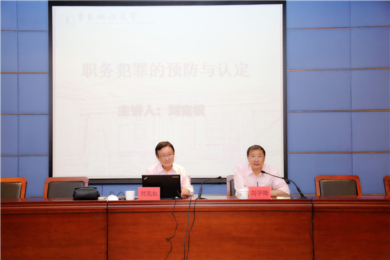 刘宪权围绕干部如何用好权的问题,从职务犯罪的预防、认定以及贪污受贿的具体犯罪三个方面,详细介绍了五种预防措施以及贪污罪、受贿罪的概念和种类,并通过在高校发生的典型贪污受贿案例将概念具体化。整个报告深入浅出、精彩纷呈,对我校干部“责如何担”“权如何用”起到了很好的警示作用。