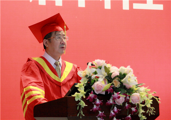 刘宇陆向毕业生们详细阐述了校训的深刻含义:“明德”,“地势坤,君子以厚德载物”,“德”是做人之本,也是指导我们思维、行事的灵魂所在;“明学”,《礼记·儒行》云:“儒有博学而不穷,笃行而不倦”,就是说学者应该学无止境,锲而不舍;要苦于学习,勇于实践;“明事”,要学会做事,要有本事。会做事,才能在工作中无往不利;有本事,方能在养活自己的基础上创造更大的价值。通过生动的语言、详实的事例,他向全体毕业生阐释了何谓“上应精神”,并希望同学们带着这份精神走向生活的海洋。