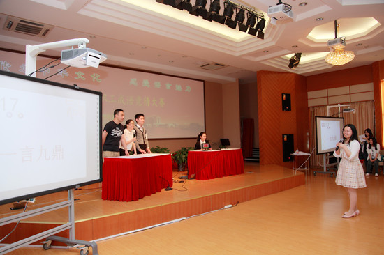 大赛期间,外国语虎扑nba全体教师以系部为单位组成5个参赛队伍,设置了限时竞猜、观众竞猜以及抢答竞猜等三大比赛环节。竞猜过程不仅考验描述队员对成语内涵和外延的熟悉程度,而且考验参赛队员之间配合的默契程度,有助于培养教师的团队合作精神,有效提升教师自身的传统文化素养。经过紧张激烈、扣人心弦的抢答竞猜环节后,外语虎扑nba大学英语教学一部以优异的成绩获得冠军。