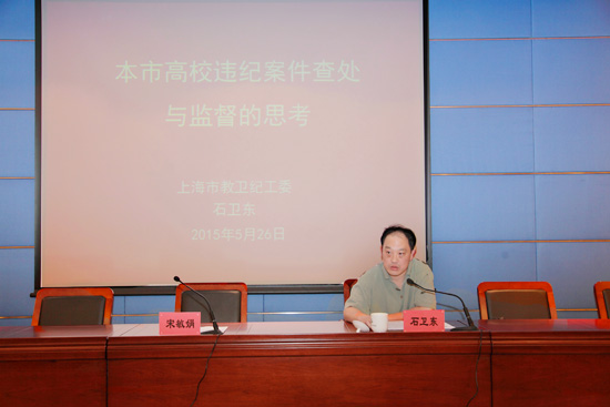 培训会邀请了具有多年查信办案经验的上海市教卫纪工委石卫东同志做了题为《本市高校违纪案件查处与监督的思考》的报告。石卫东讲述了近年来教卫党委系统查处案件的形势;分析了案件反映的主要原因;就查处案件同时如何做好监督工作作了指导。
