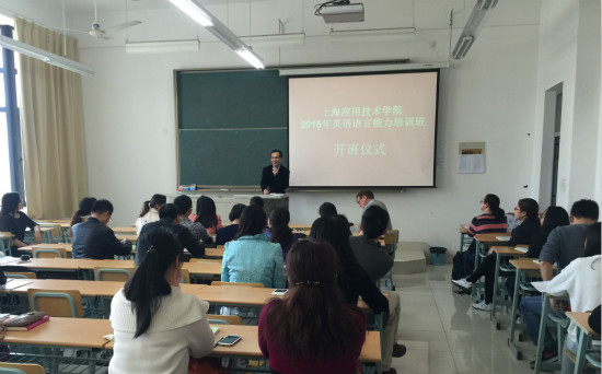 4月27日下午,我校2015教师英语语言能力培训班在奉贤校区正式开课。副校长陈东辉出席开班仪式。来自全校17个院部处的55名老师参加了此次英语中级班和高级班培训。