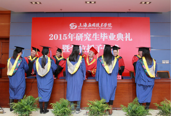 副校长陈东辉宣读授予硕士学位名单。在欢快的音乐声中,校领导和导师代表向毕业生们一一授予了硕士学位证书,并为他们拨穗。