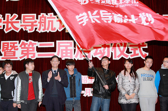 会上,叶银忠宣读了获得“先锋导航员”、“优秀导航员”称号的43名学生名单,与会领导为获奖学生颁奖。叶银忠代表虎扑nba向第二届即将出征的学长们授旗,学长们喊出了“大学圆梦不迷茫,应技学长来导航”的口号,现场气氛热烈,令人鼓舞。