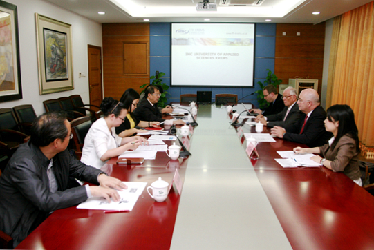 10月24日,奥地利克雷姆斯应用技术大学创始人Dr. Heinz Boyer、CEO 兼学术委员会副主席Dr. Karl Ennsfellner、国际事务项目经理Jens Peter Ennen一行前来我校参观访问。校长刘宇陆亲切会见访问团,并与来访嘉宾进行深入会谈。