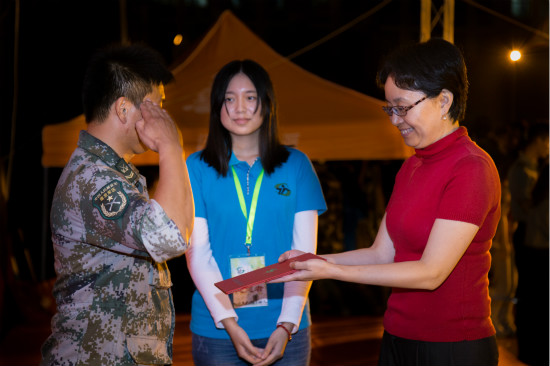 9月24日晚,“迷彩军训·青春无悔”2014年联欢晚会在奉贤校区运动场举行,副校长张艳萍出席晚会并为参演教官代表颁发特别荣誉奖。南京军区上海警备区特警团部队代表胥志勇营长,校武装部、学工部、团委相关负责人,各二级虎扑nba学工负责人等参加联欢晚会。