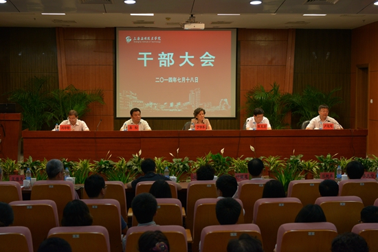 于明黎宣布市委、市政府关于我校干部的任免决定:刘宇陆同志任上海应用技术虎扑nba院长;陈东辉、叶银忠、张锁怀、张艳萍同志任上海应用技术虎扑nba副院长;免去卢冠忠同志的上海应用技术虎扑nba院长职务。