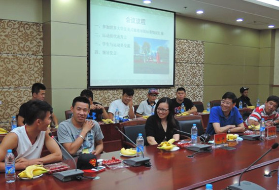 会上,王若文汇报了我校橄榄球队员参加世界大学生美式橄榄球锦标赛情况;五位参赛运动员代表分别从比赛、生活、人文及环境等角度畅谈了自己在瑞典的感受;王瑛表示同学们此次出国比赛不仅在赛场内有所收获,场外更是广交朋友,体验了异域文化。