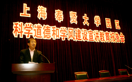 11月14日,由我校承办的上海奉贤大学园区科学道德和学风建设宣讲教育报告会隆重举行。副校长刘宇陆、上海市科学道德与学风建设宣讲教育领导小组办公室处长苏祺、华东师范大学哲学系王顺义教授、我校马克思主义教育部主任李国娟教授、我校研究生部主任王宇红和各高校相关负责人等出席报告会。