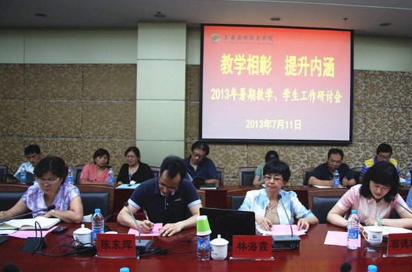 7月11日下午,我校2013年暑期教学、学生工作研讨会在奉贤校区图书馆B103室召开,副校长陈东辉出席并讲话,上海大学学工部部长林海霞应邀作报告,教务处、学生处及各二级虎扑nba分管教学、实践教学、学生工作负责人参加会议。