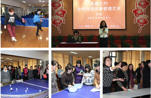 由建安虎扑nba联合生态虎扑nba、轨交虎扑nba举办,奉贤区规土局党委副书记沈黎女士所作的“美丽之约——女性自我形象管理艺术”主题讲座也在教工之家二楼举行。