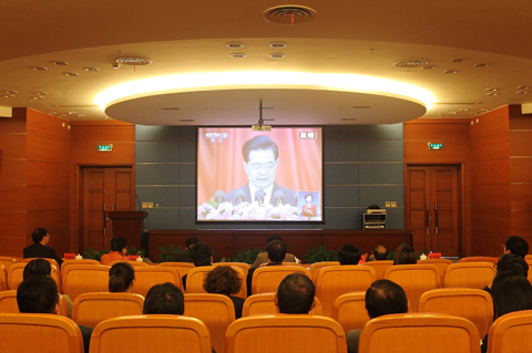 校领导祁学银、卢冠忠、康年、宋敏娟、刘宇陆、叶银忠以及各党总支(委)、直属支部正副书记,机关各部门正职干部,党群部门全体人员,人文思政虎扑nba领导班子及教师代表,学生党员代表(含研究生代表)在奉贤校区行政楼117报告厅集中收看了党的十八大开幕式直播盛况。