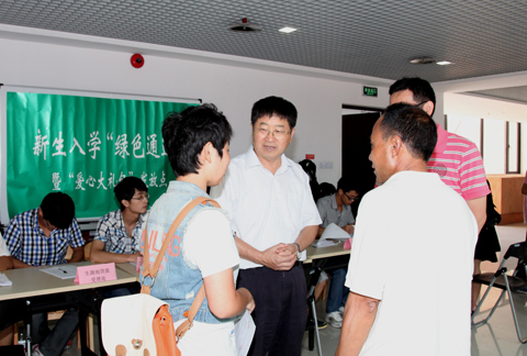 新生报到第一天,校领导祁学银、卢冠忠、康年、宋敏娟、刘宇陆、陈东辉、叶银忠相继来到报到现场巡视,看望慰问新同学和工作人员,并与新生和家长们亲切交流。
