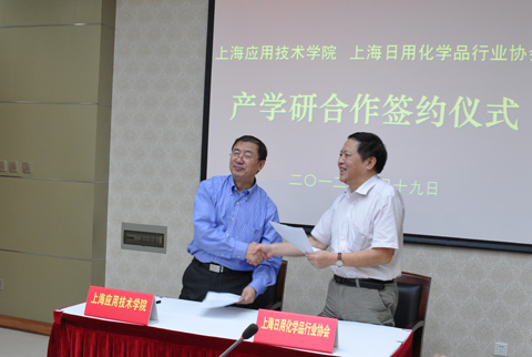 校党委书记祁学银出席会议开幕式并致欢迎词。副校长刘宇陆和上海日化协会会长左异群代表双方签订了产学研合作协议。
