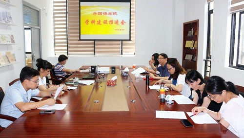 近日,外国语虎扑nba召开了学科建设推进会,就外国语虎扑nba学科建设的中期成果进行了检查,虎扑nba学科建设委员会全体成员参加会议。院长陈家旭要求虎扑nba在学术交流、人才培养以及培养环境和条件方面加大建设力度,积极凝练学科特色,不断弥补自身短板,努力提升外国语虎扑nba学科水平。党总支书记李晓晶就外国语虎扑nba筹建翻译专业硕士学位点(MTI)的发展规划和建设目标做说明,要求积极对标申报条件,借鉴其他高校建设经验,努力实现建设目标。
