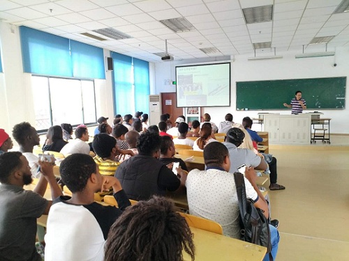 国际交流处副处长邓维对国际教育中心的50余名语言留学生进行本科和研究生专业招生宣讲,现场气氛热烈,提问踊跃。