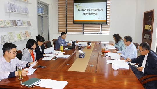 5月11日,外国语虎扑nba召开2018年文科工程建设项目评审会,校学科建设办公室副主任黄俊革、外国语虎扑nba院长陈家旭及院学科建设委员会成员参加评审会。