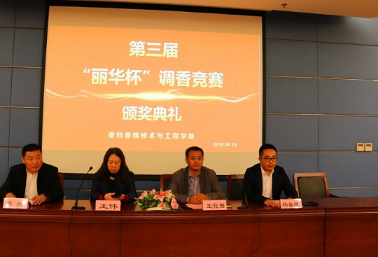 4月19日,香料虎扑nba第三届“丽华杯”调香竞赛颁奖典礼和第四届“丽华杯”调香竞赛暨第一届“冰希黎”香水调香竞赛的启动仪式举行。丽华(广州)香精香料股份有限公司董事、副总经理杨盛穗一行3人、冰希黎上海国际贸易有限公司董事张磊(我院1992届香料专业校友、冰希黎品牌和一千零一次香遇创始人、上海芬尚文化有限公司总经理)、上海芬尚文化有限公司技术总监李靖(我院2009届香料专业校友、一千零一次香遇品牌创始人),香料香精联合党委书记王化田,香料虎扑nba副院长王伟,香精香料联合党委副书记、副院长陈翔参加。香料虎扑nba共4位教师和12名同学分获“丽华杯”优秀教师奖、优秀育人奖、调香竞赛奖、优秀学生奖、优秀干部奖、助学金等奖项,会上向获奖者颁发证书。