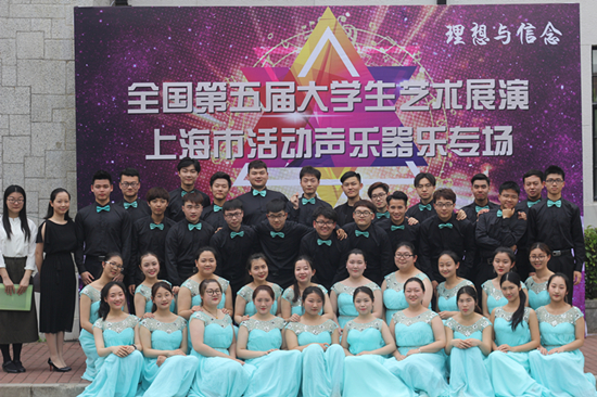 日前,从全国第五届大学生艺术展演上海赛区比赛中传来喜讯,我校参展节目荣获声乐(合唱)一等奖一项,戏剧(短剧)二等奖一项,西乐二等奖、朗诵二等奖、舞蹈三等奖各一项,并在书法(篆刻)、设计、微电影、艺术教育科研论文等各类别中获得二、三等奖十多项。