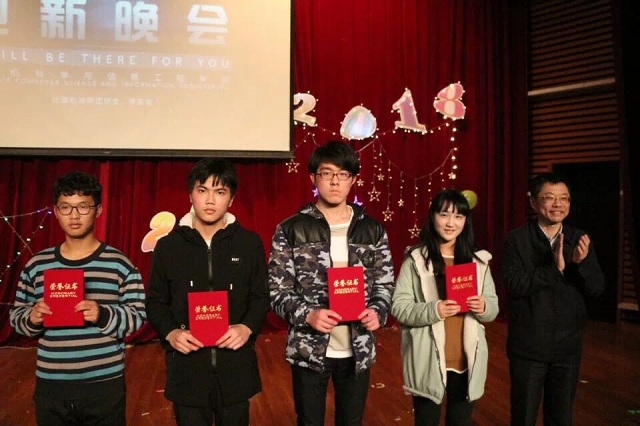 1月4日,计算机虎扑nba举行迎新晚会,校党委副书记、校长陆靖出席并为虎扑nba获奖学生颁发了“腾科杯”荣誉证书。