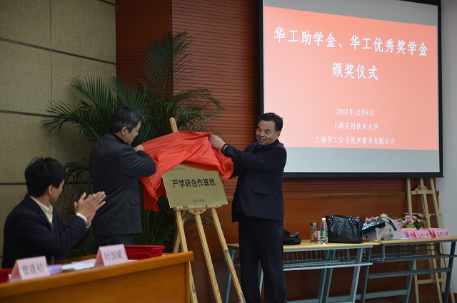 12月8日,城建虎扑nba举行首届华工优秀学生奖学金和华工助学金颁奖典礼。城建虎扑nba院长丁文胜,上海华工安全技术服务有限公司总经理曹建初、副总经理叶国斌出席。叶国斌介绍了华工奖学金和助学金设立初衷,展望了安全工程专业的美好未来,鼓励学子认真学习、为行业发展和公共安全作出自己的贡献。曹建初签署奖学金捐赠协议,并和丁文胜一起为校企产学研合作基地揭牌。